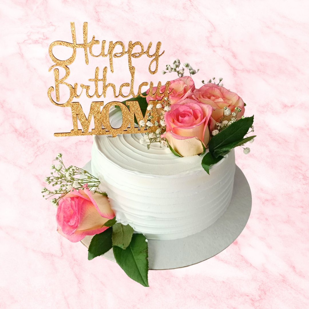 This beautiful cake celebrates Mom's birthday with a touch of classic elegance! Entitled Timeless Elegance: A Birthday Rose Cake for Mom, it features the pure beauty of real pink roses for a sophisticated and heartfelt gesture.