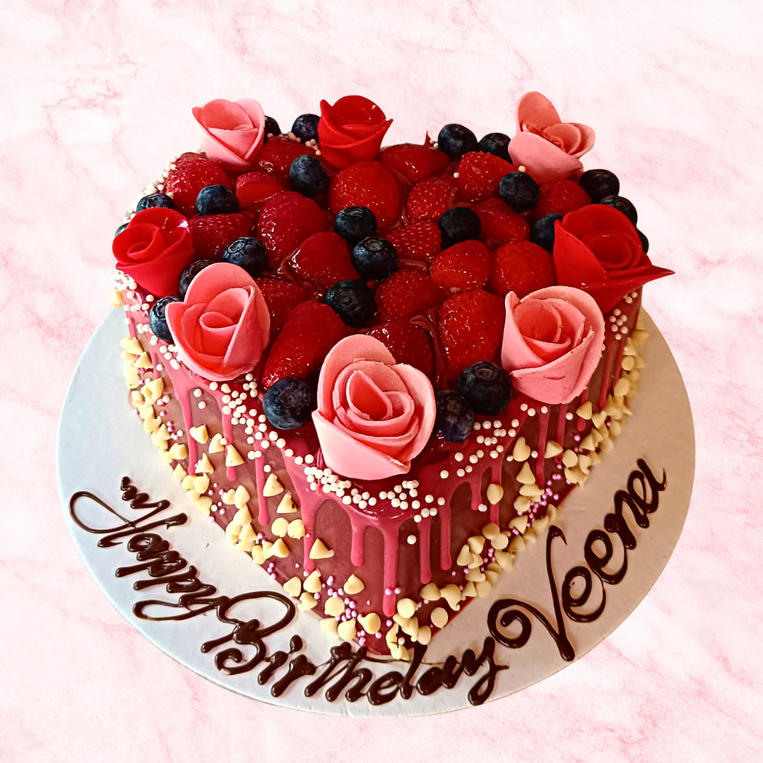 Shower her with love and sweetness on her birthday with Berry Sweet Birthday: A Heartfelt Cake for Her! This charming heart-shaped cake is adorned with fresh berries and delicate pink cream flowers, creating a delightful and romantic centerpiece.