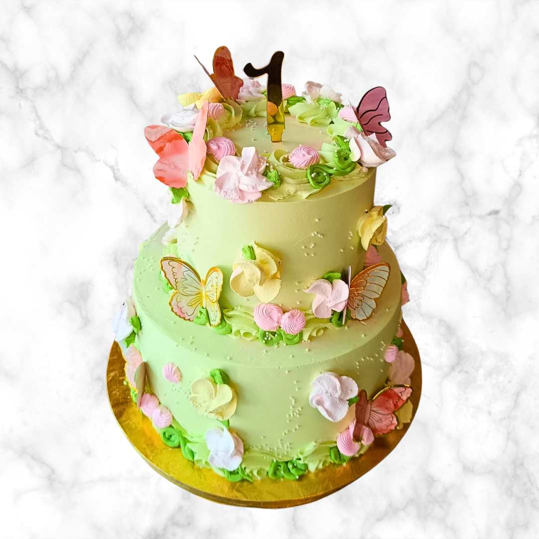 Celebrate your first year of love or your little one's first birthday with this enchanting butterfly-themed cake. Adorned with delicate edible butterflies, it’s a sweet and elegant way to mark a memorable milestone!