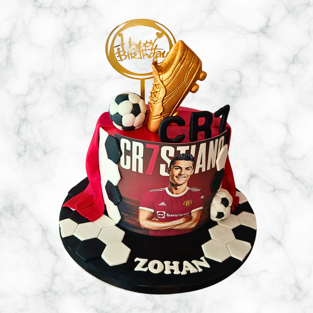 Get ready to celebrate in style with this "CR7 Champion cake! This cake is a perfect tribute to any Cristiano Ronaldo fan, especially for a birthday celebration.