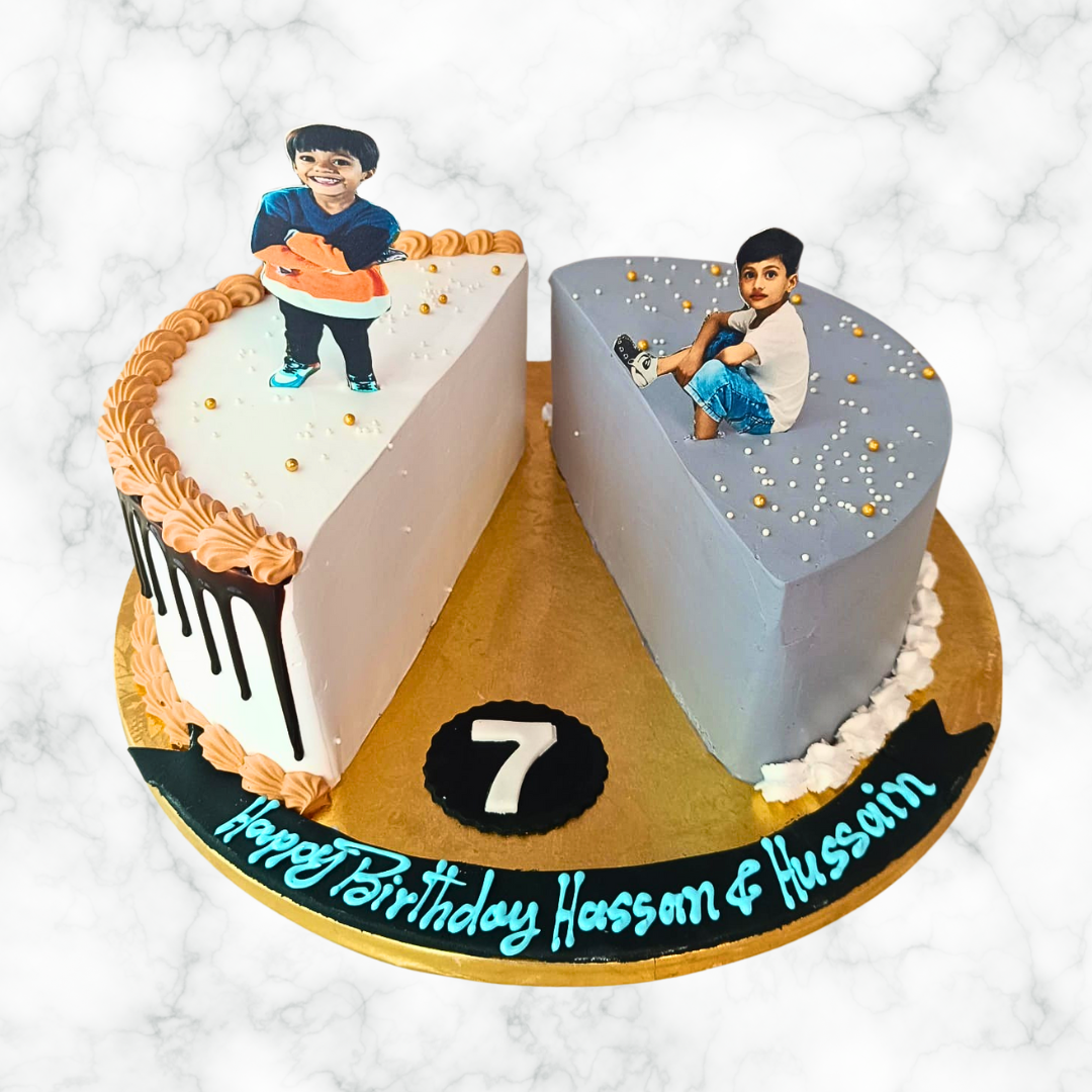 This delightful cake is a perfect way to celebrate twins in a unique and personal way. The two-toned frosting, the photo of the twins, and the optional touches create a visually stunning and memorable centerpiece that will be a hit at any twins' birthday party.