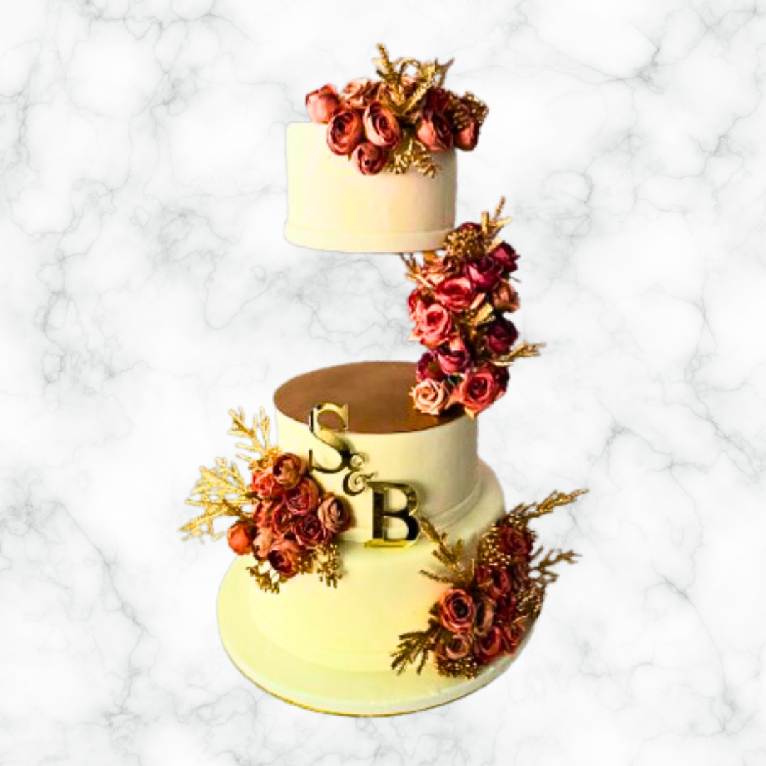 Imagine a cake overflowing with the richest cream, adorned with a cascading avalanche of beautiful roses. A stunning centerpiece nestled between the tiers adds a final touch of grandeur, creating a truly unforgettable engagement cake.
