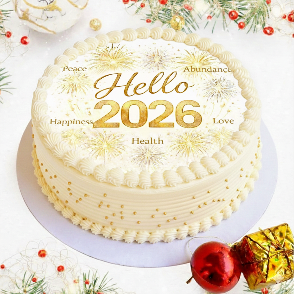 Celebrate the New Year in style with our elegant Golden Wishes Hello 2026 Cake, that celebrates peace, love, health, happiness, and abundance.