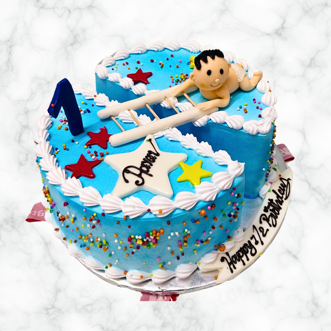 A half-year birthday cake is a delightful confection that celebrates the milestone of reaching six months since your baby's birth.