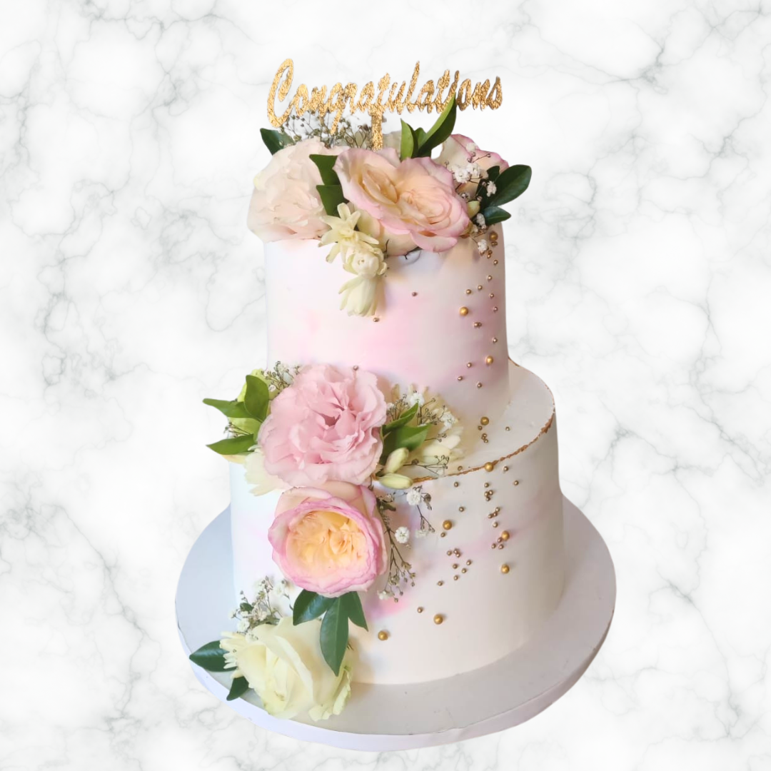 Sending congratulations and sweet wishes with this delightful wedding cake.