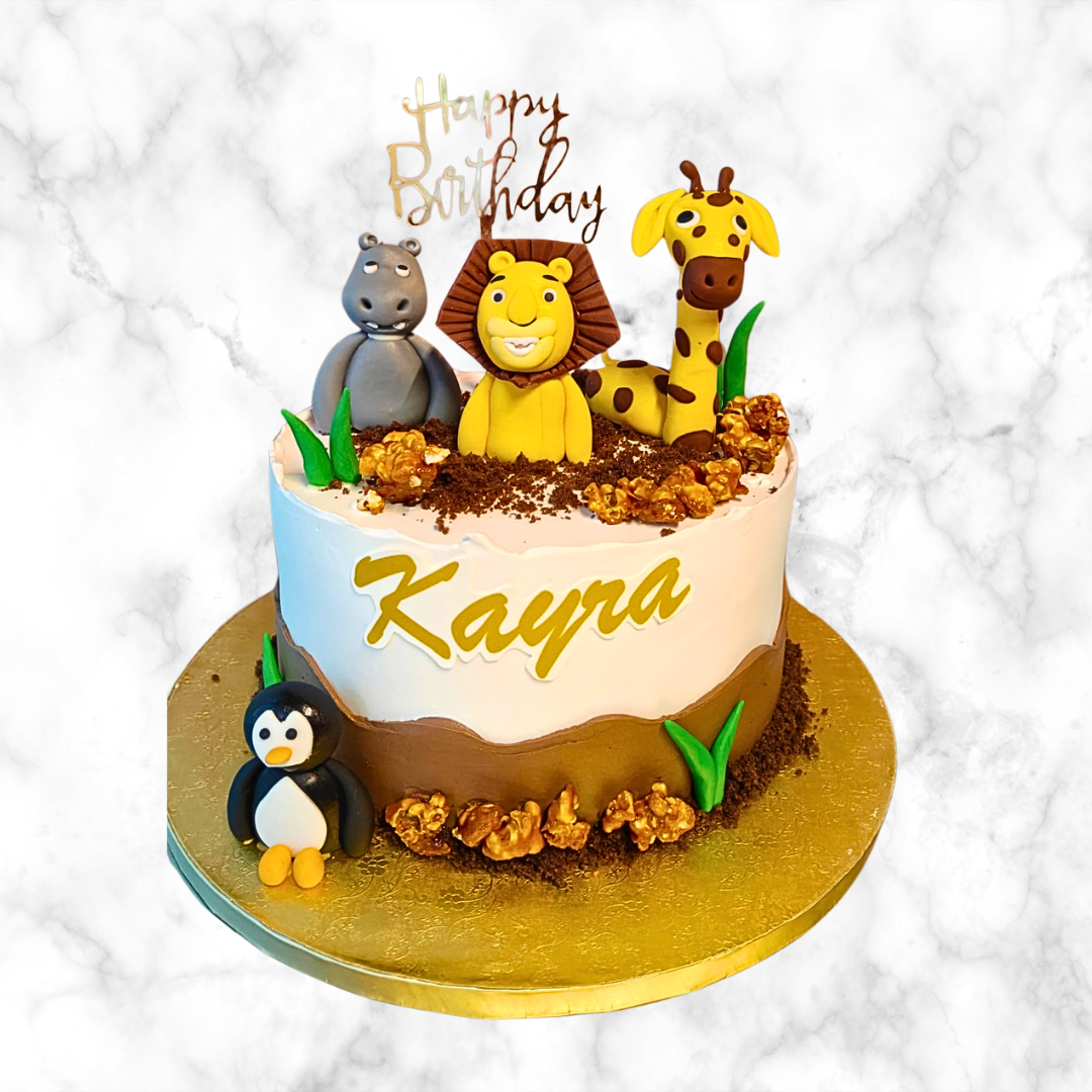 Bring the wild to your celebration with our Madagascar-themed cake! Featuring the beloved penguin, lion, giraffe, and hippo, this cake is a delightful adventure packed with vibrant colors and intricate designs. Perfect for kids' parties and fans of the jungle vibes, it’s a sweet safari on every slice!