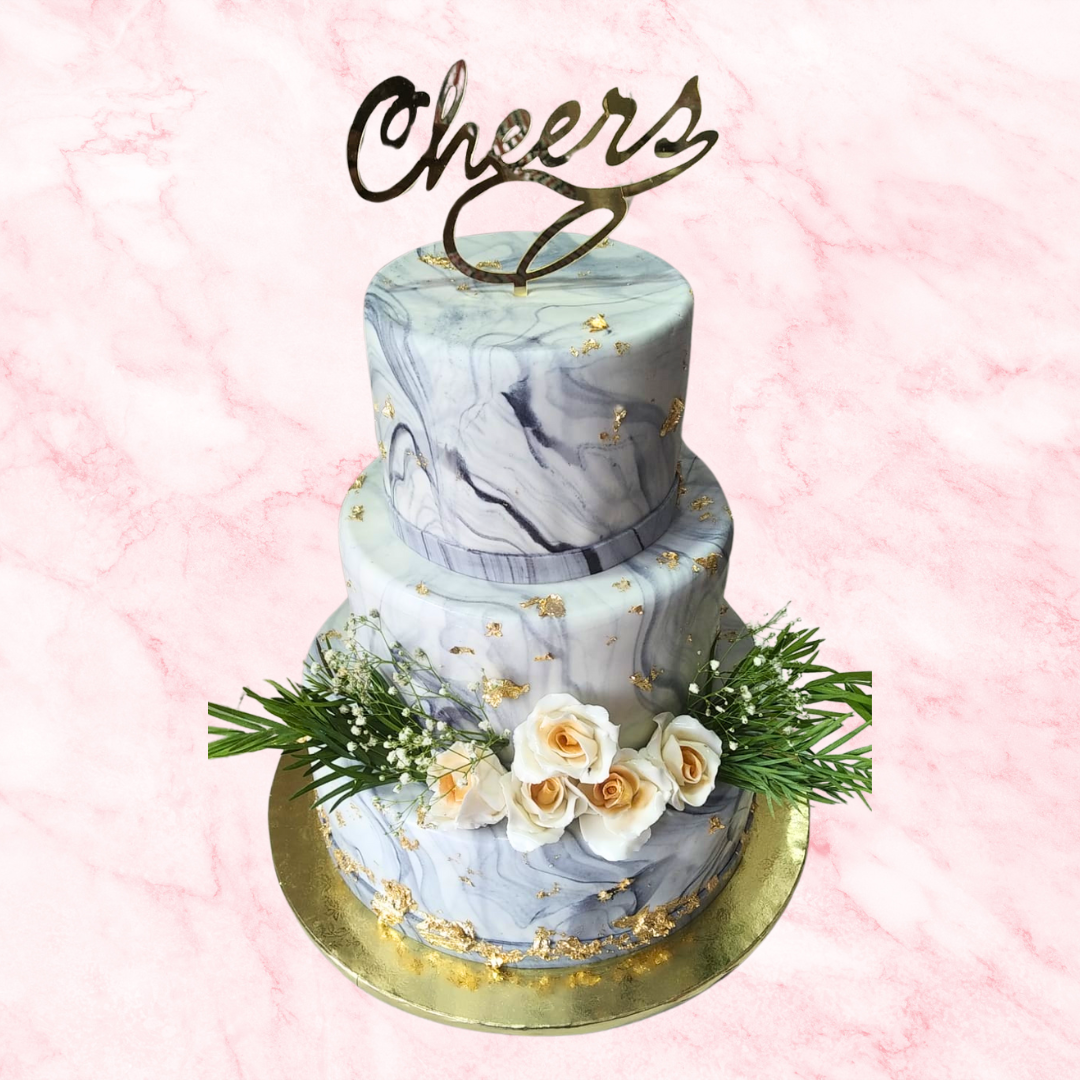 Introducing the breathtakingly beautiful Marble Wedding Cake, a true masterpiece in the world of confectionary art.