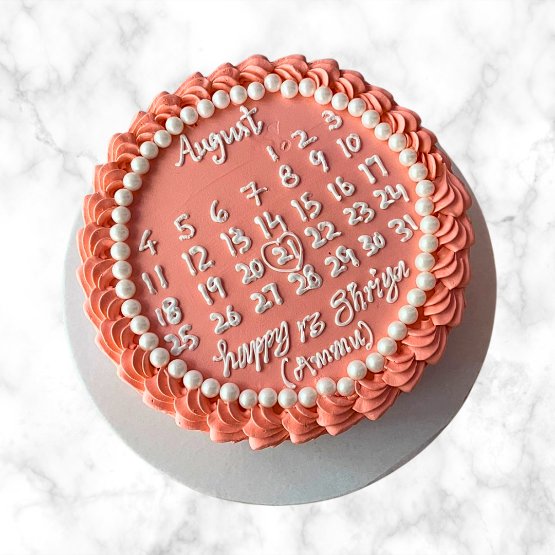 Celebrate your special day with this elegant peach-flavored birthday cake featuring an August calendar with the 21st marked for a memorable touch. Simple yet meaningful, this cake is perfect for a milestone birthday.