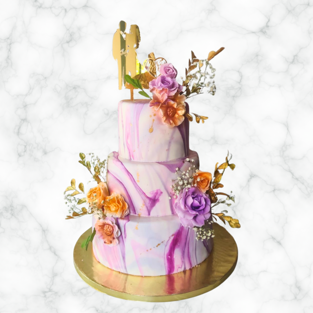 This captivating cake celebrates a vibrant celebration! Entitled Sunset Symphony: A Pink Frosted Dream with Vibrant Blooms, it features a unique combination of colors and textures, perfect for a memorable occasion.