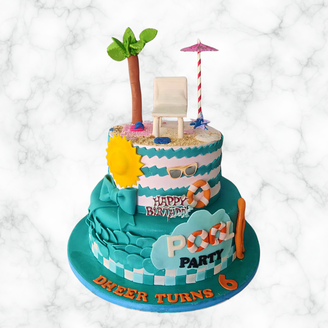 Dive into summer fun with this Pool Party Theme Cake! This delightful cake is the perfect centerpiece for your poolside celebration.