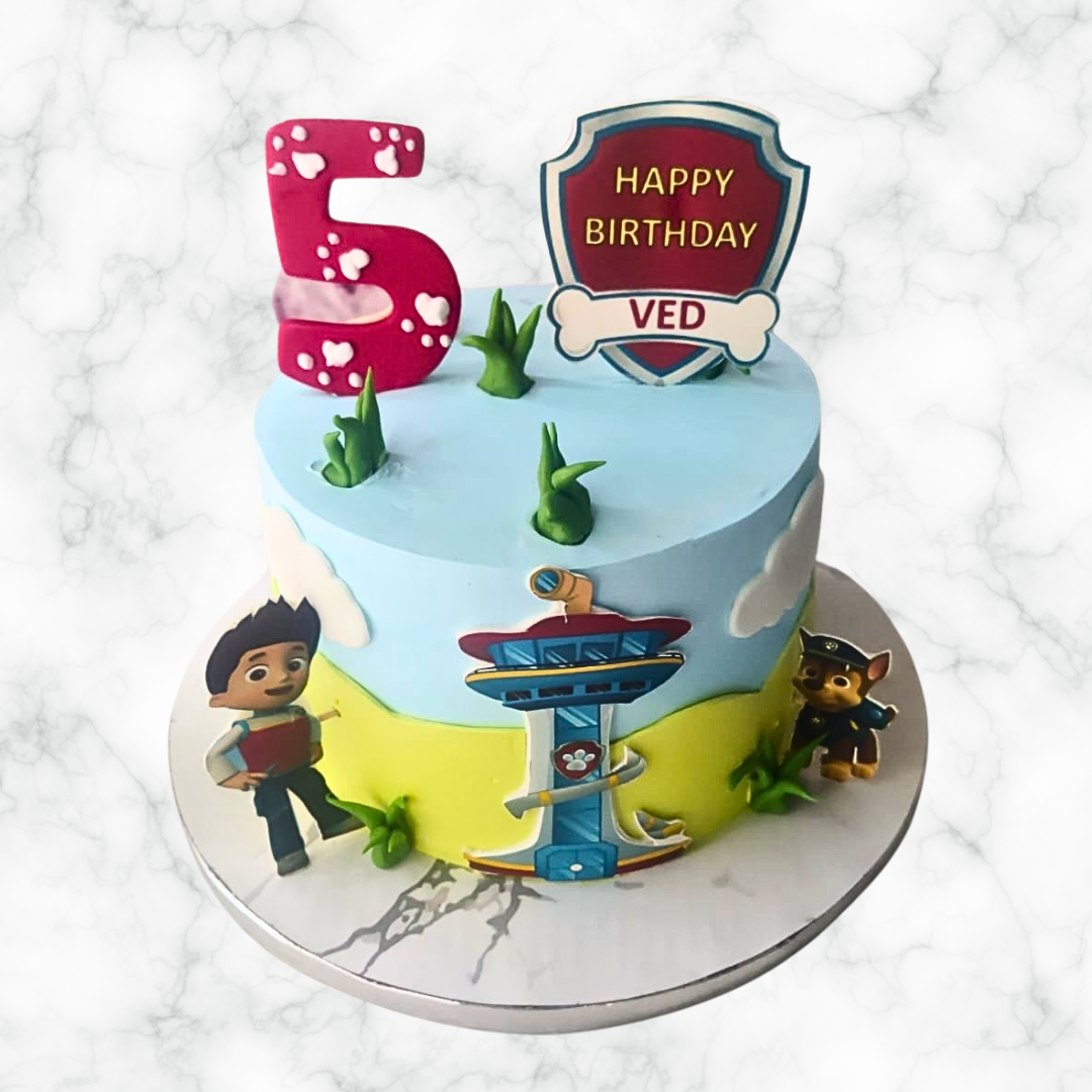 This delightful cake is perfect for a birthday celebration with a Paw Patrol theme. The white frosting base, the vibrant character cutouts, the colorful sprinkles, and the Paw Patrol logo create a visually stunning and "pawesome" centerpiece that any Paw Patrol fan will absolutely love.