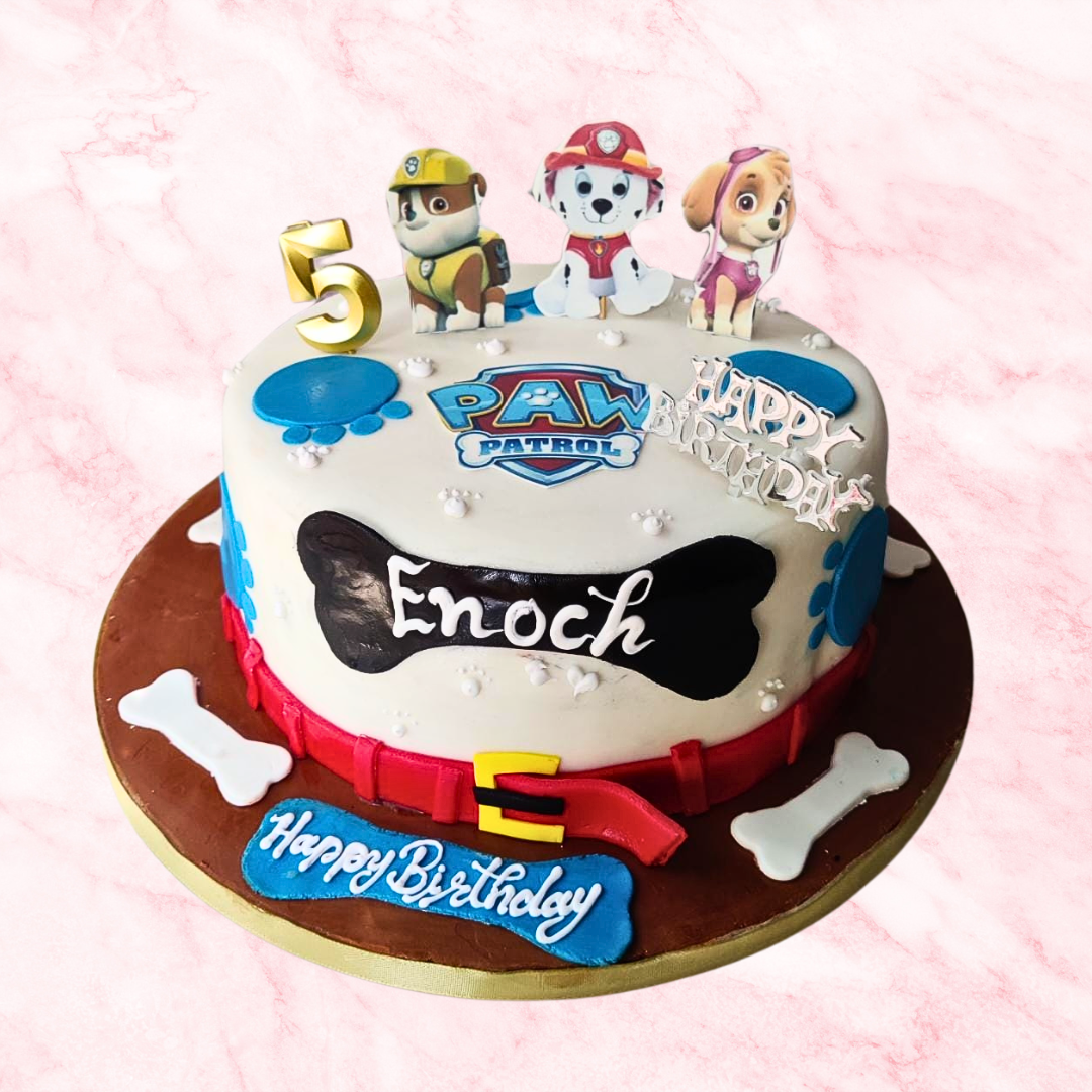 This delightful cake is perfect for a birthday celebration with a Paw Patrol theme. The bright frosting, the playful 2D fondant bones, and the character cutouts create a visually appealing and "pawesome" centerpiece that's easy to make and sure to impress any Paw Patrol fan!