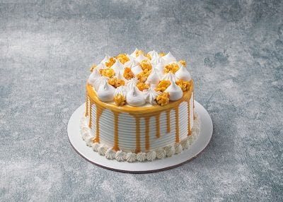 Slip your taste buds an indulgent treat with our Salted Caramel Cake! This yummy cake is made with fluffy layers of vanilla cake and our house-made buttery caramel sauce, topped with caramelized popcorns for a crunchy texture. Satisfy your cravings without guilt!