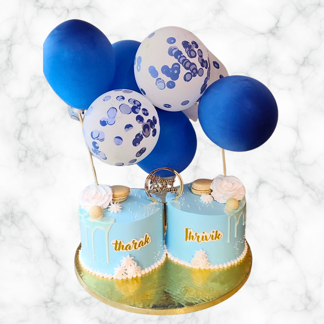 Celebrate twice the fun with a unique "Side-by-Side Twin Cake Celebration"! Imagine two classic tiers, each a delicious tribute to one of the twins, standing side-by-side to create a showstopping centerpiece.