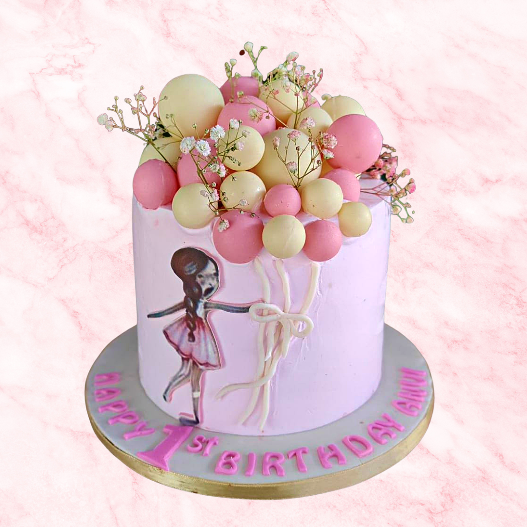 Celebrate your precious baby girl's first trip around the sun with Sweet Dreams & Sweet Balloons: A First Birthday Cake. This adorable cake captures the wonder and joy of her first year, making it a perfect centerpiece for a milestone celebration.