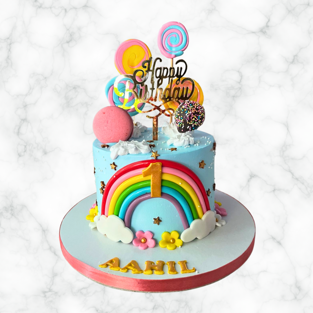 This vibrant cake is perfect for any celebration, from a birthday to a baby shower. It's a delicious and visually engaging centerpiece that guarantees to bring a smile to everyone's face with its explosion of color and delightful treats.
