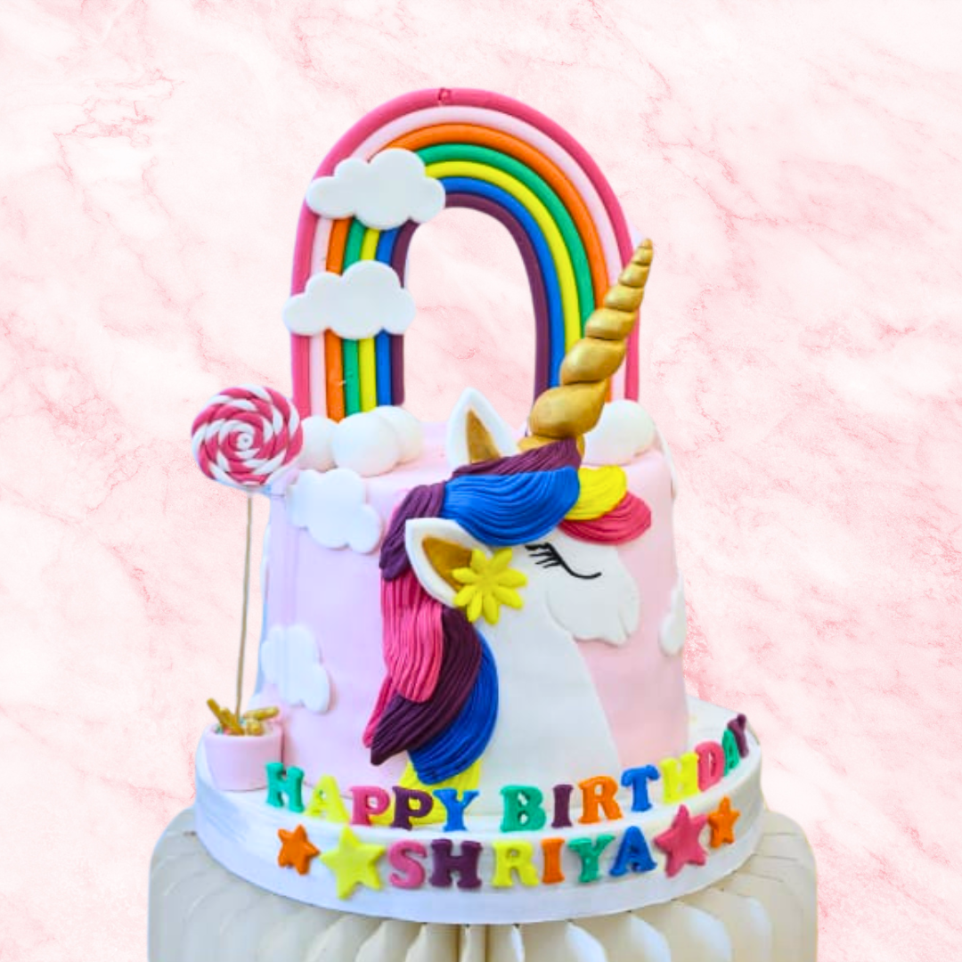 Delight your child's birthday with the magical, creamy goodness of the Unicorn Rainbow Cake.